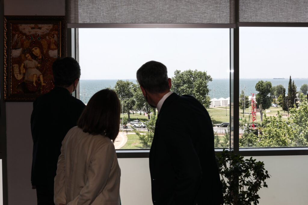 Στην ξενάγηση, πέραν του Δημάρχου Θεσσαλονίκης, την Πρόεδρο συνόδευσαν ο Πρόεδρος του Δημοτικού Συμβουλίου Θεσσαλονίκης Πέτρος Λεκάκης και η Αντιδήμαρχος Πολιτισμού και Τουρισμού Μαρία Καραγιάννη, προσφέροντάς της χαρακτηριστικές φωτογραφίες που παρουσιάζονται στην έκθεση.