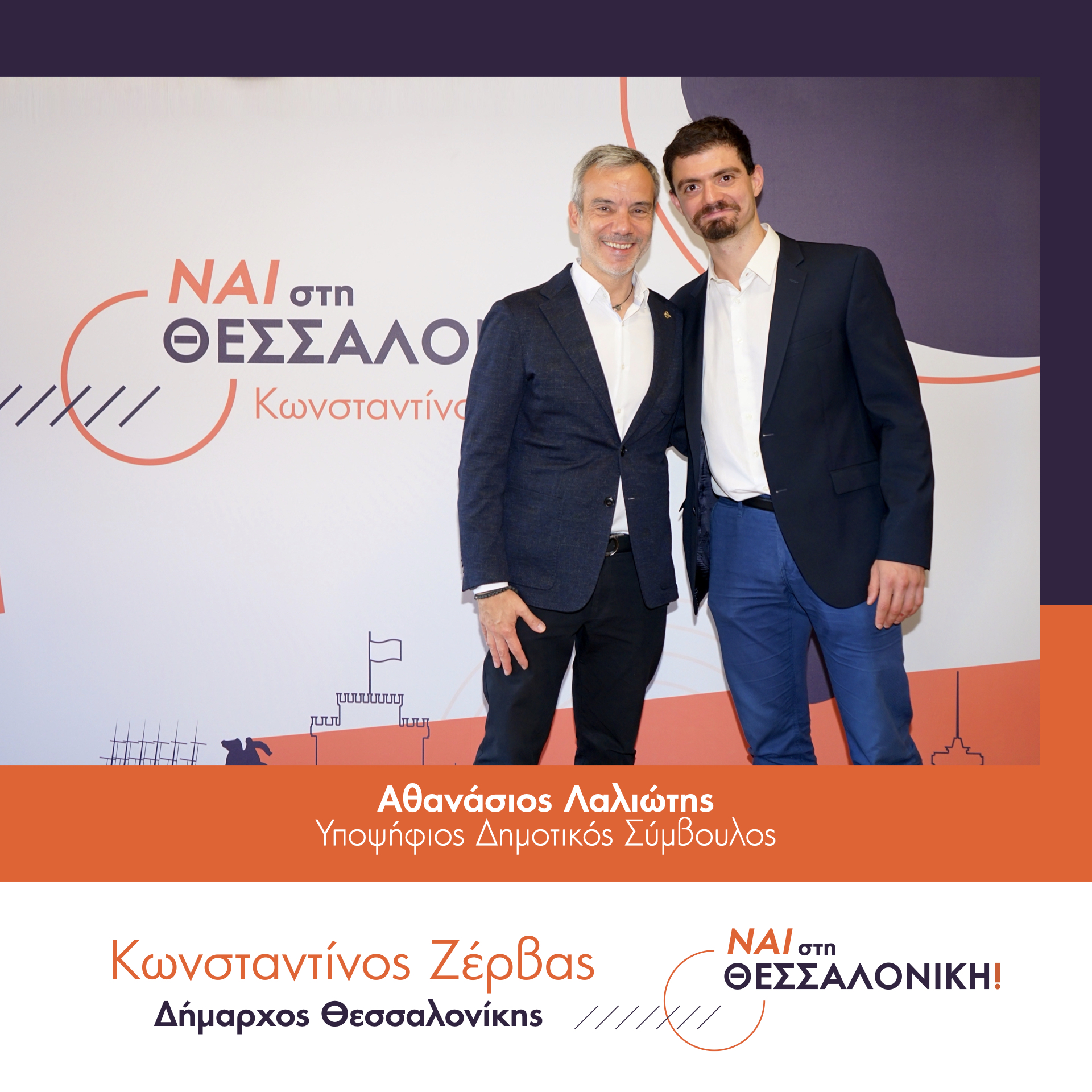 Ο Θανάσης Λαλιώτης, κάτοικος της Ε΄ Δημοτικής Κοινότητας -στη γειτονιά της Μαρτίου- είναι απόφοιτος του Κολλεγίου Ανατόλια και μετέπειτα του τμήματος Πολιτικών Επιστημών του ΑΠΘ. Στην πρακτική άσκηση είχε την πρώτη του επαφή με τον χώρο της τοπικής αυτοδιοίκησης στο τμήμα Επικοινωνίας και Δημοσίων Σχέσεων του Δήμου Πυλαίας – Χορτιάτη. Ακολούθησε 2ο κύκλο σπουδών στη Νομική του Πανεπιστημίου Λευκωσίας και ταυτόχρονα διαπιστεύθηκε ως διαμεσολαβητής (κλάδος εξωδικαστικής επίλυσης διαφορών) του Υπουργείου Δικαιοσύνης. Ολοκλήρωσε τις στρατιωτικές του υποχρεώσεις στην ιστορική Δ’ Μοίρα Καταδρομέων – Ιερολοχιτών στη Ρεντίνα. Σήμερα εργάζεται ως ασκούμενος δικηγόρος, ενώ παρακολουθεί το μεταπτυχιακό πρόγραμμα «Δίκαιο ενέργειας, επιχειρήσεις, κανονιστικό πλαίσιο και πολιτικές».