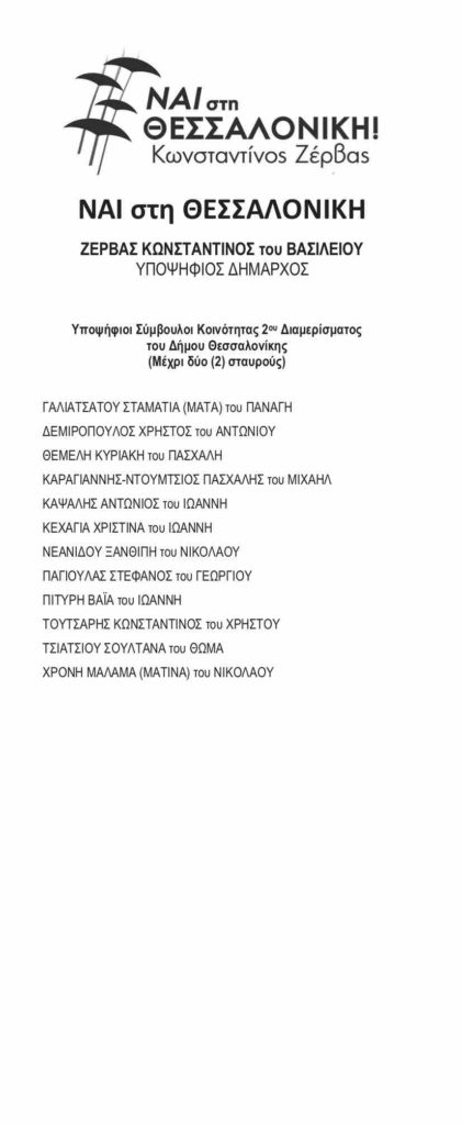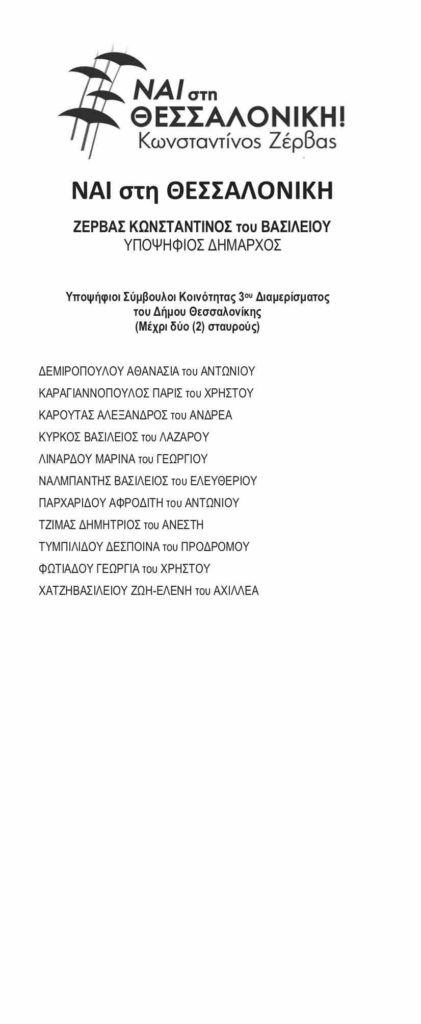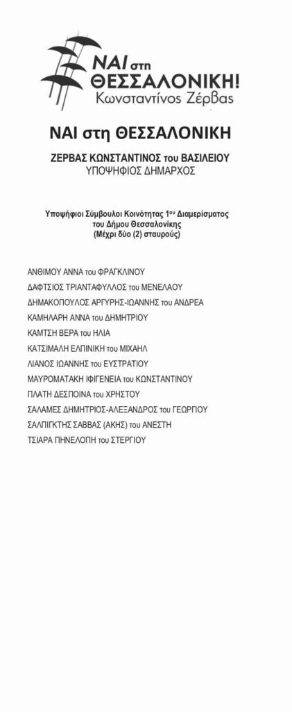 Δείτε τα ψηφοδέλτια της παράταξης «Ναι στη Θεσσαλονίκη»