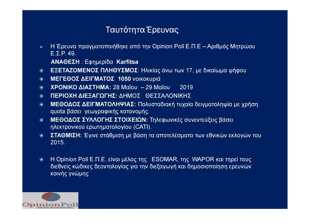 Έτσι, η ήδη μεγάλη έκπληξη του πρώτου γύρου φαίνεται να βρίσκεται πολύ κοντά στην νίκη. Σημειώνουμε δε, ότι τα αποτελέσματα των ερευνών της OPINION POLL για την Karfitsa επαληθεύτηκαν πλήρως από τα αποτελέσματα του πρώτου  γύρου. Αντίθετα έρευνες όλο αυτό το διάστημα έδειχναν πολύ μεγαλύτερα ποσοστά του Ν.Ταχιάου, τον Ν.Ταχιάο και την Κ.Νοτοπούλου να είναι οι «μονομάχοι» στον δεύτερο γύρο και τον Κ. Ζέρβα να βρίσκεται στο 5%-6% που στο σύνολό τους αποδείχτηκαν εντελώς λαθεμένες. Αυτό προσδίδει ιδιαίτερη αξιοπιστία και σ΄αυτή την έρευνα της OPINION POLL.