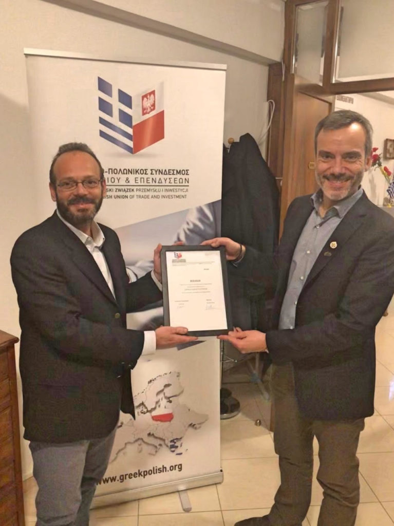 Μετά το πέρας της συνάντησης, ο κ. Λαζαρίδης απένειμε στον Κωνσταντίνο Ζέρβα., εκ μέρους του διοικητικού συμβουλίου, τον τίτλο του επίτιμου μέλους του Ελληνοπολωνικού Επιμελητήριου.
