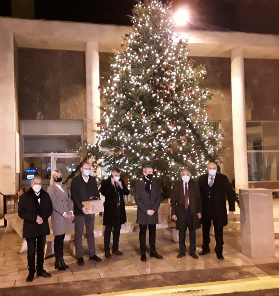 Το χριστουγεννιάτικο δέντρο που τοποθετήθηκε στο προαύλιο του νοσοκομείου “ΑΧΕΠΑ” φωταγωγήθηκε απόψε παρουσία του Δημάρχου Θεσσαλονίκης Κωνσταντίνου Ζέρβα.