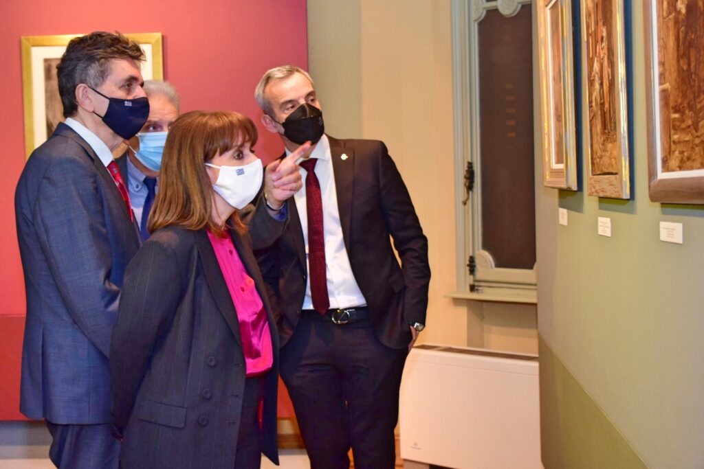 Στην επετειακή έκθεση της Δημοτικής Πινακοθήκης Θεσσαλονίκης “Νικόλαος Γύζης – 120 χρόνια από τον θάνατό του” ξεναγήθηκε σήμερα (25/11) το απόγευμα η Πρόεδρος της Δημοκρατίας Κατερίνα Σακελλαροπούλου. Κατά την επίσκεψή της στην Κάζα Μπιάνκα, την Πρόεδρο της Δημοκρατίας υποδέχθηκαν ο Δήμαρχος Θεσσαλονίκης Κωνσταντίνος Ζέρβας κι ο Υφυπουργός Εσωτερικών (Μακεδονίας – Θράκης) Σταύρος Καλαφάτης.