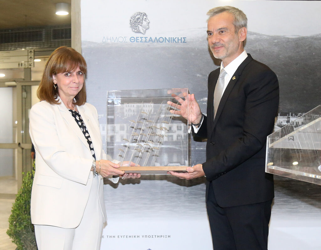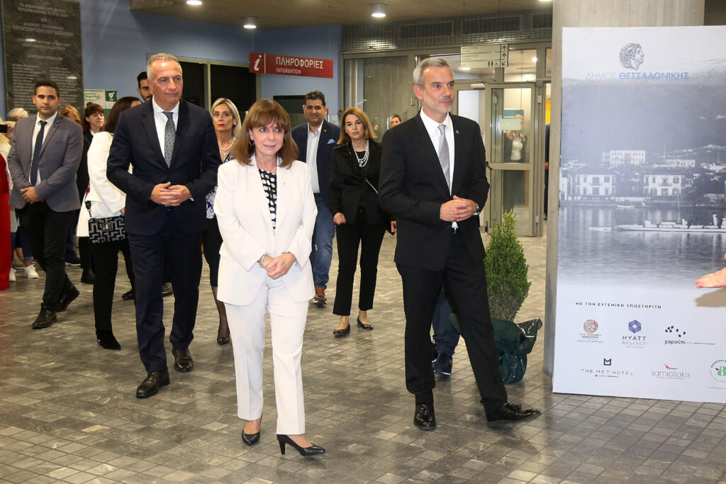 Την Πρόεδρο της Δημοκρατίας Κατερίνα Σακελλαροπούλου υποδέχθηκε απόψε (26/10), στο Δημαρχείο, ο Δήμαρχος Θεσσαλονίκης Κωνσταντίνος Ζέρβας, στο πλαίσιο εκδήλωσης προς τιμήν της, με την ευκαιρία της εορτής του Πολιούχου Αγίου Δημητρίου και της απελευθέρωσης της πόλης.
