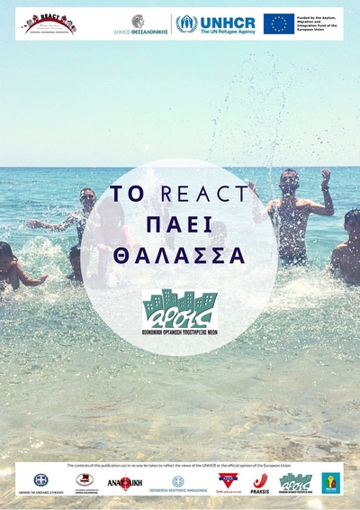 Στο πλαίσιο της λειτουργίας της ομάδας «Παιδικής Προστασίας (ΑΡΣΙΣ)» του Προγράμματος REACT και σε συνεργασία με την Ύπατη Αρμοστεία του ΟΗΕ για τους πρόσφυγες, οργανώθηκε και υλοποιήθηκε, την Τετάρτη 12 Αυγούστου 2020, καλοκαιρινή εκδρομή στην Χαλκιδική.