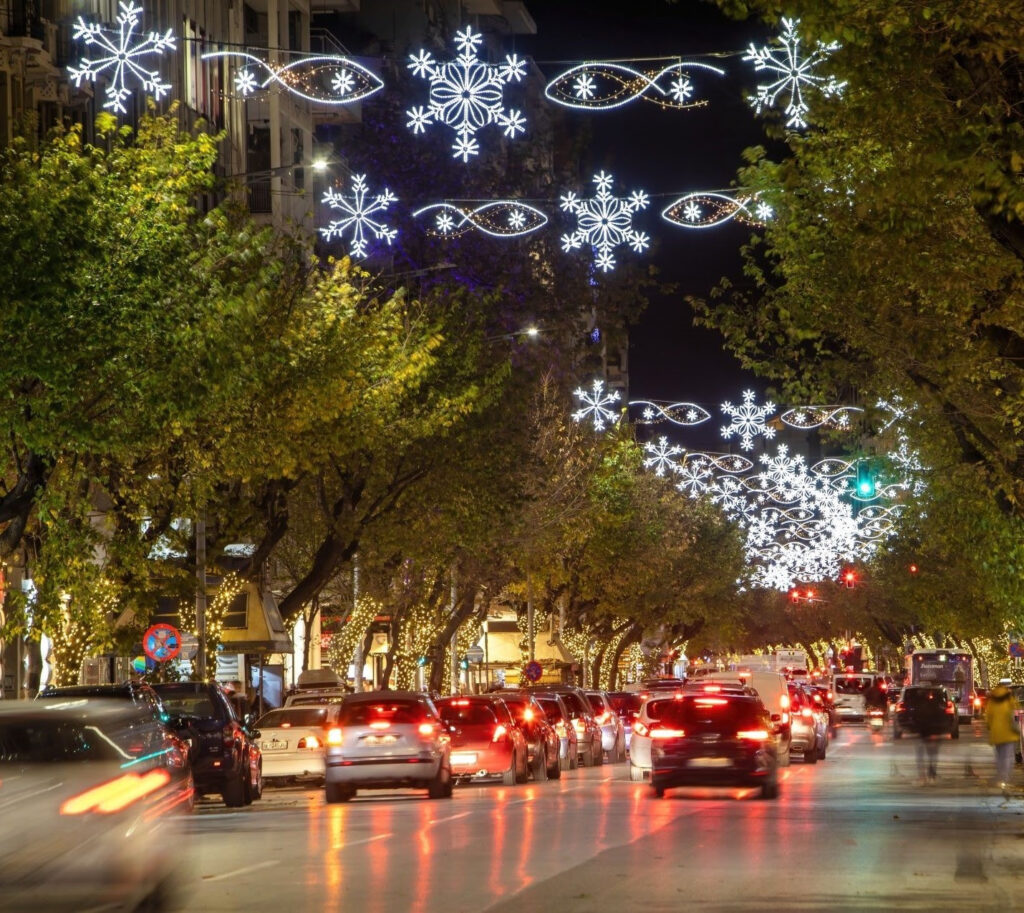 Η Λεωφόρος Νίκης θα είναι στολισμένη με επιστύλια φωτιζόμενα έλατα, ενώ η Βενιζέλου θα αποκτήσει χαρακτήρα ‘70ς. Φέτος, μετά από αρκετά χρόνια ο Δήμος Θεσσαλονίκης θα τοποθετήσει εναέριο στολισμό και στην οδό Εγνατία, με σκοπό την τόνωση της εμπορικής κίνησης.