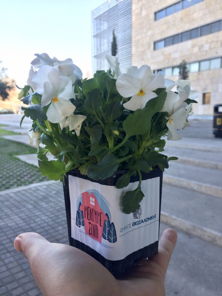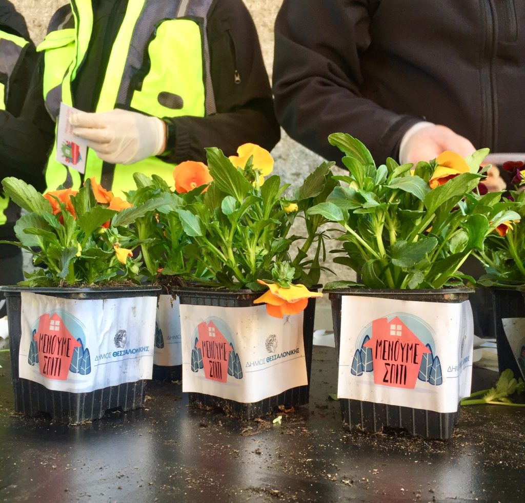 Σε μία συμβολική πρωτοβουλία προχώρησε ο Δήμος Θεσσαλονίκης, θέλοντας να ενισχύσει το μήνυμα της περιόδου «Μένουμε Σπίτι». Μοιράστηκαν πέντε χιλιάδες μικρά λουλούδια από τα φυτώρια του Δήμου έχοντας πάνω τους το μήνυμα «Μένουμε Σπίτι Δημιουργικά-Ομορφαίνουμε το χώρο μας».