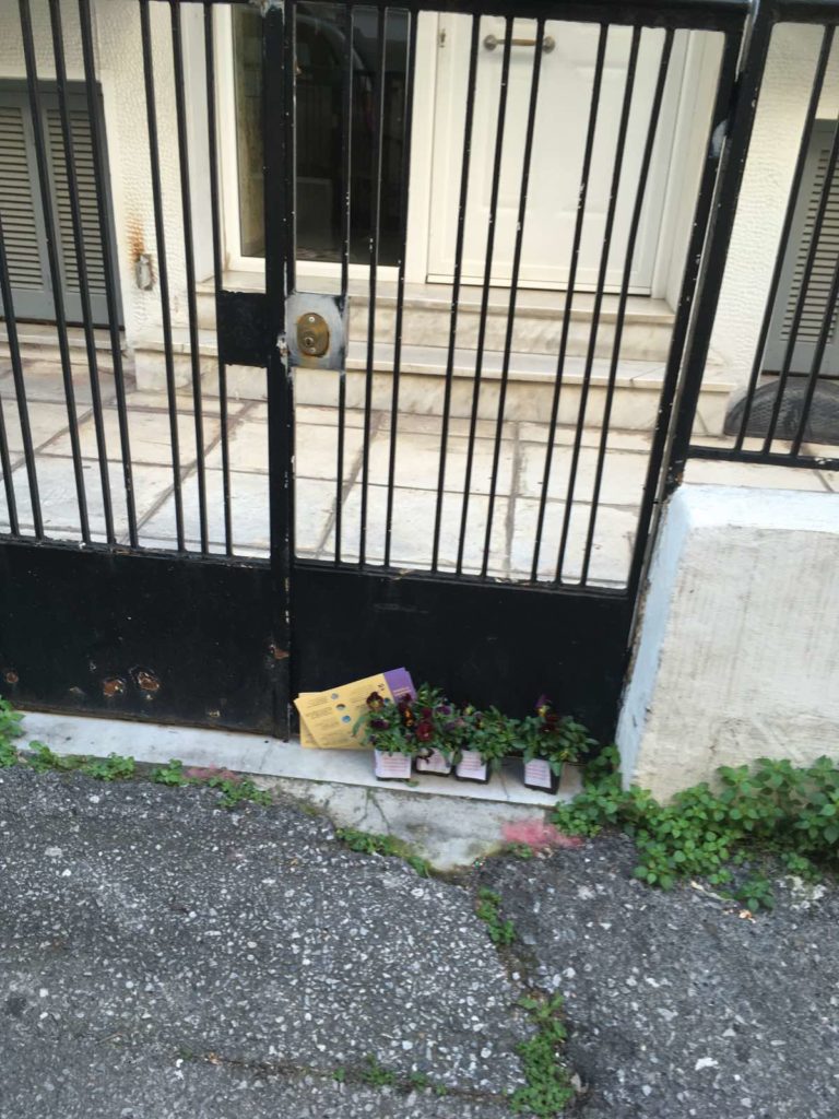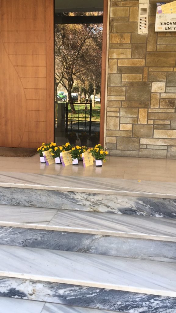 Με τη συνδρομή του Αντιδημάρχου Περιβάλλοντος Σ. Δημητριάδη και της Δημοτικής Αστυνομίας, όλα τα γλαστράκια τοποθετήθηκαν σε εισόδους πολυκατοικιών και συνοδεύονταν από φυλλάδια με οδηγίες πρόληψης από τον κορωνοϊό.