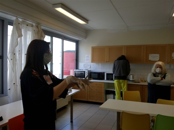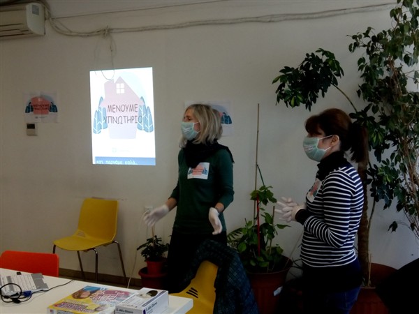 Με το σύνθημα: «Μένουμε στο υπνωτήριο» πραγματοποιήθηκε χθες 7/4/2020 ενημερωτική ομιλία για το νέο κορωνοϊό Covid-19 και επίδειξη του σωστού τρόπου πλυσίματος των χεριών, στο υπνωτήριο αστέγων του Δήμου Θεσσαλονίκης, από κλιμάκιο ιατρών (καρδιολόγο και παθολόγο) και επισκέπτρια υγείας των Δημοτικών Ιατρείων της Δ/νσης Κοινωνικής Προστασίας και Δημόσιας Υγείας του Δήμου Θεσσαλονίκης. Η δράση αγκαλιάστηκε με ενδιαφέρον από τους άστεγους συμπολίτες μας οι οποίοι λόγω των περιοριστικών μέτρων παραμένουν στο υπνωτήριο.