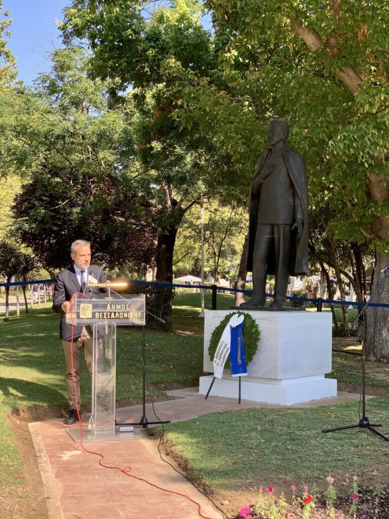 Για αποκατάσταση της ιστορίας της πόλης μίλησε ο Δήμαρχος Θεσσαλονίκης Κωνσταντίνος Ζέρβας στον χαιρετισμό που απηύθυνε κατά τη σεμνή τελετή που διοργάνωσε ο Δήμος Θεσσαλονίκης για την αποκατάσταση του ανδριάντα του Ίωνα Δραγούμη, η οποία μέσα σε μια κίνηση γεμάτη συμβολισμούς πραγματοποιήθηκε σήμερα το πρωί, ανήμερα της επετείου των εκατό χρόνων από τη δολοφονία του.