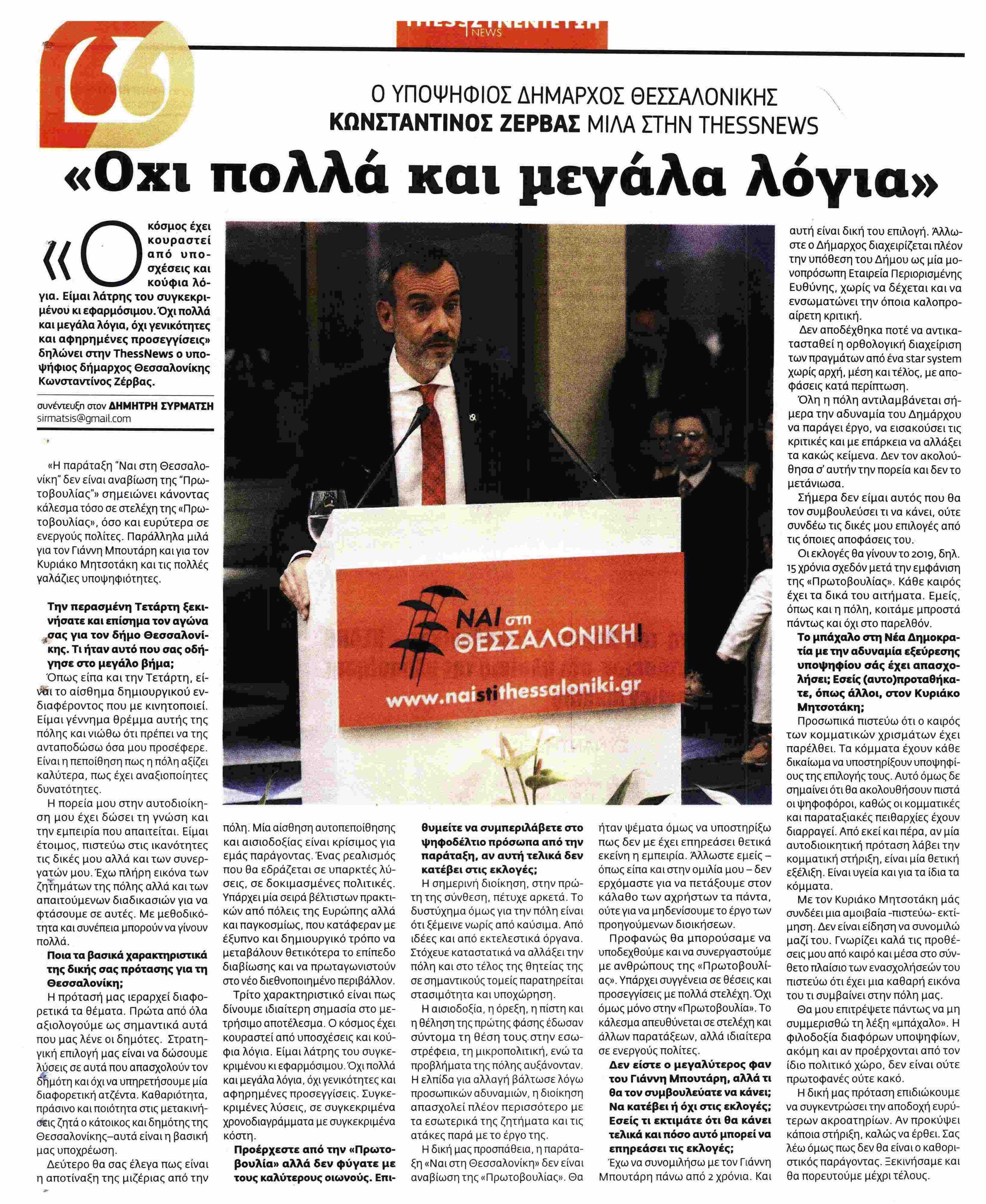 Συνέντευξη στο έντυπο Thessnews 26/10/18