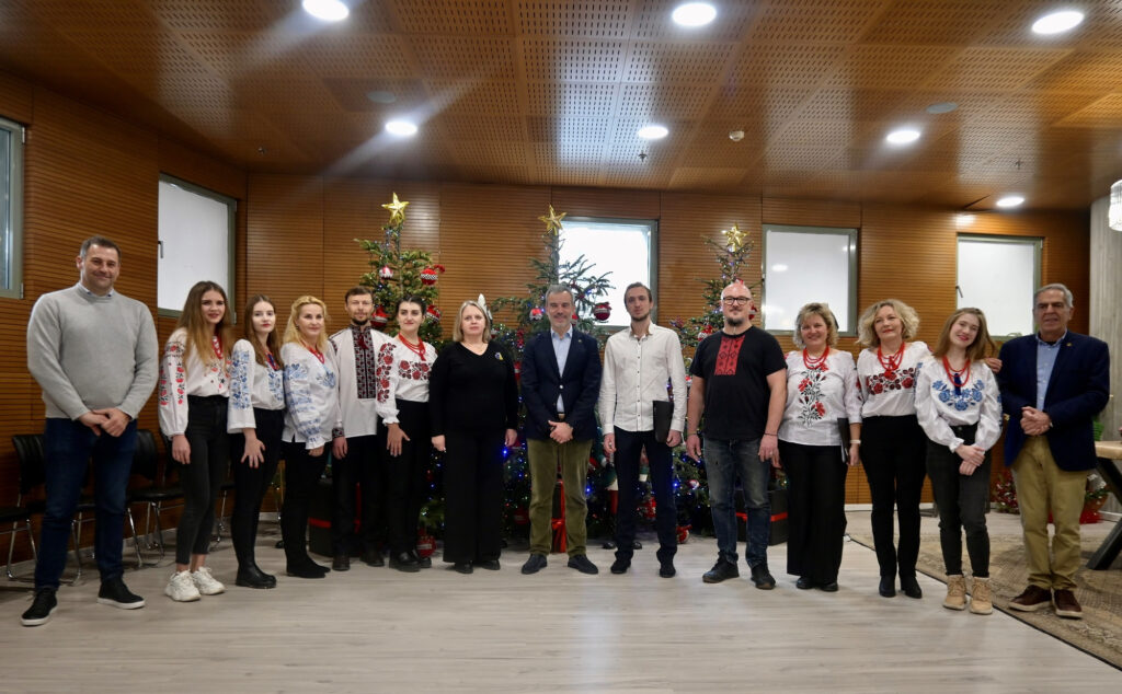 Συγκίνηση σκόρπισαν τα μέλη της χορωδίας της ουκρανικής κοινότητας, που έψαλαν παραδοσιακά κάλαντα της χώρας τους. Ο Δήμαρχος Θεσσαλονίκης συνομίλησε με τα μέλη της κοινότητας και τους ευχήθηκε ειρήνη και υγεία. Από την πλευρά τους, τα μέλη της ουκρανικής κοινότητας εξέφρασαν τις ευχαριστίες τους προς τον Δήμο και συνολικά προς τους Θεσσαλονικείς για τη βοήθεια που παρείχαν στον ουκρανικό λαό.