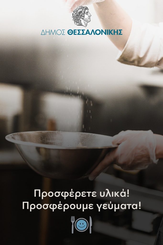 Επαγγελματίες, επιχειρηματίες και ιδιοκτήτες καταστημάτων στο χώρο της εστίασης, που λόγω των προληπτικών μέτρων για την αποφυγή εξάπλωσης του κορωνοϊού, δεν λειτουργούν, μπορούν να διαθέσουν πρώτες ύλες (τρόφιμα) στο Δήμο Θεσσαλονίκης ώστε να ενισχυθούν ευπαθείς ομάδες του πληθυσμού.