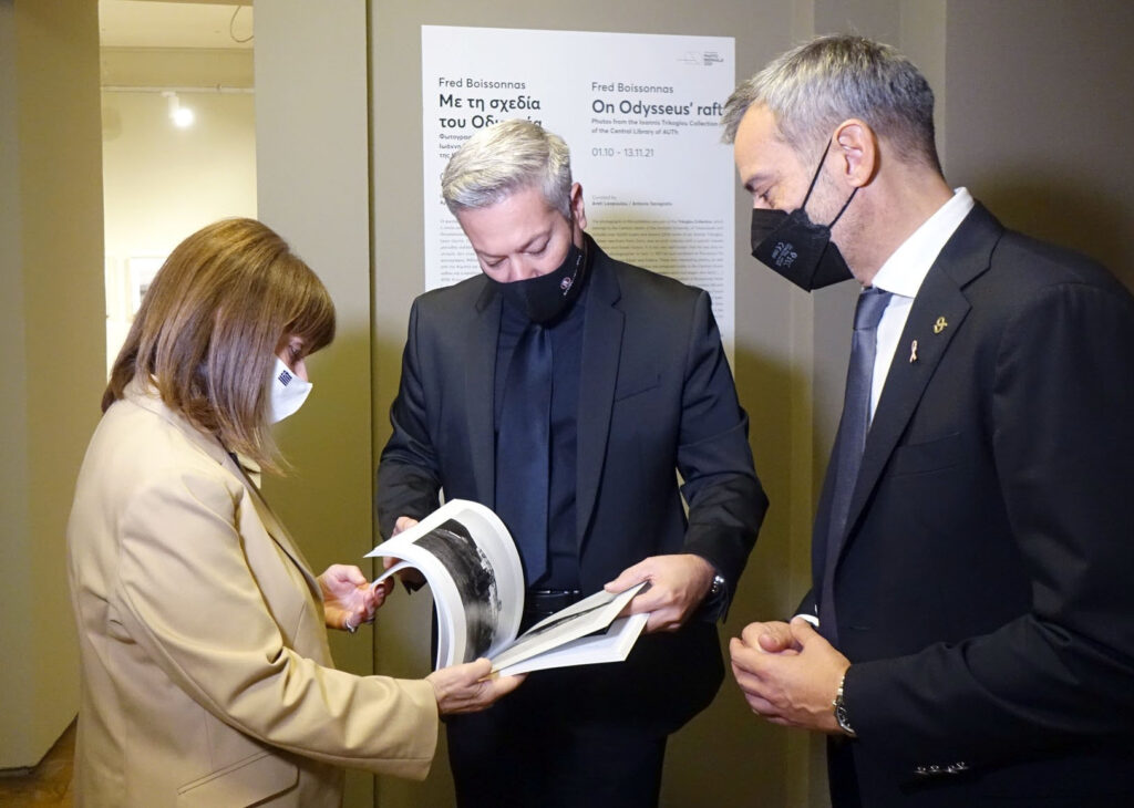Ο Δήμαρχος Θεσσαλονίκης και ο Διευθυντής της Αγιορειτικής Εστίας Αναστάσιος Ντούρος ξενάγησαν την Πρόεδρο της Δημοκρατίας στην έκθεση φωτογραφίας “Fred Boissonnas: ‘Με τη σχεδία του Οδυσσέα’. Φωτογραφίες από τη Συλλογή Ιωάννη Τρικόγλου της Κεντρικής Βιβλιοθήκης του ΑΠΘ”, η οποία φιλοξενείται στον χώρο της Αγιορειτικής Εστίας στο πλαίσιο των 56ων Δημητρίων και της Πρωτοβουλίας 1821 – 2021.