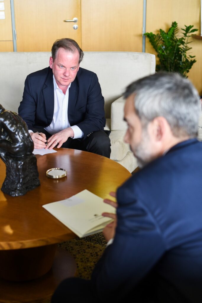 Μετά το πέρας της υπογραφής, οι δύο άνδρες είχαν κατ΄ ιδίαν συνάντηση σε θερμό κλίμα συναντίληψης με θέμα τις υποδομές και τα μεγάλα έργα που βρίσκονται σε εξέλιξη ή σε φάση σχεδιασμού και επηρεάζουν καθοριστικά την ποιότητα ζωής των πολιτών. Στη συνάντηση παρέστησαν επίσης ο Γενικός Γραμματέας Υποδομών κ. Γιώργος Καραγιάννης, ο Γενικός Γραμματέας Υποδομών κ. Νίκος Σταθόπουλος, ο Πρόεδρος του ΟΑΣΘ, κ. Γιώργος Σκόδρας, ο Διευθύνων Σύμβουλος του ΟΑΣΘ, κ. Ιωάννης Ρεντζεπέρης, ο Πρόεδρος του ΟΣΕΘ, κ. Γιάννης Καλογερούδης, ο Διευθύνων Σύμβουλος του ΟΣΕΘ, κ. Γιάννης Τόσκας, οι Αντιδήμαρχοι του Δήμου Θεσσαλονίκης, ο Πρόεδρος του Δημοτικού Συμβουλίου και ο Γενικός Γραμματέας του Δήμου.