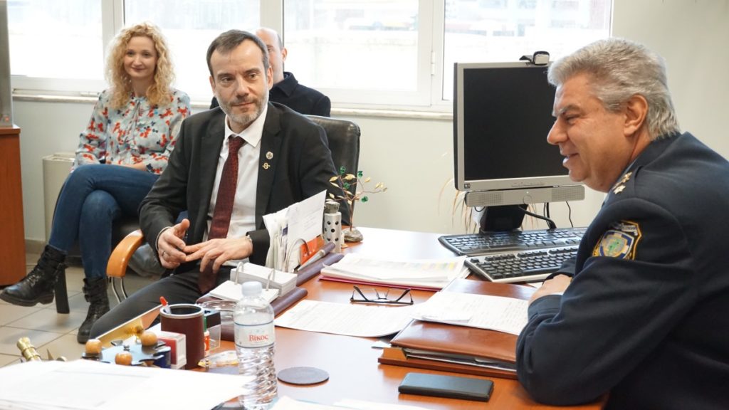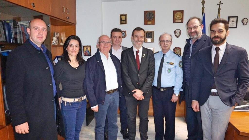 Επισκέφτηκαν το Αστυνομικό Μέγαρο όπου και συναντήθηκαν με τον Γενικό Αστυνομικό Διευθυντή Θεσσαλονίκης υποστράτηγο κ. Φ. Δομζαρίδη και ακολούθως διαδοχικά με τους κ. Λ. Μαυρόπουλο, διευθυντή Διεύθυνσης Αστυνομίας, Δ. Δούβαλη, υποδιευθυντή Διεύθυνσης Ασφαλείας, Α. Τζιτζή, διευθυντή Διεύθυνση Άμεσης Δράσης, Α. Ποτούλη, διοικητή τμήματος πεζών περιπολιών. Στο επίκεντρο των συναντήσεων τέθηκαν όλα τα ζητήματα που αφορούν στην πόλη και σχετίζονται με την ασφάλεια και τις απαραίτητες κυκλοφορικές ρυθμίσεις ώστε να καταστεί ασφαλής και λειτουργική.