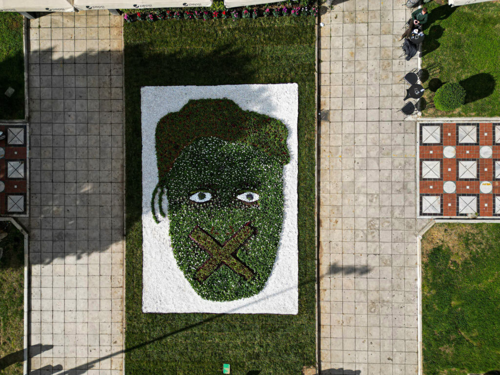 Συμμετέχοντας στις δράσεις ευαισθητοποίησης του Δήμου Θεσσαλονίκης με αφορμή τη Διεθνή Ημέρα για την Εξάλειψη της Βίας κατά των Γυναικών, η Αντιδημαρχία Περιβάλλοντος σχημάτισε στην «καρδιά» της πόλης, σε μια ζώνη πρασίνου 135 τ.μ. στην πλατεία Αριστοτέλους, τη μορφή μιας κακοποιημένης γυναίκας με λουλούδια. Για τη δημιουργία της τοποθετήθηκαν 6.000 φυτά με χιλιάδες εποχιακά λουλούδια σε διάφορους χρωματικούς συνδυασμούς κι απαιτήθηκαν επτά ημέρες εργασίας από τα συνεργεία της αρμόδιας υπηρεσίας του Δήμου Θεσσαλονίκης. Στο πλαίσιο της δράσης η Αντιδημαρχία Περιβάλλοντος μοίρασε κυκλάμινα, που συμβολίζουν τις γυναικοκτονίες που συγκλόνισαν τη χώρα.
