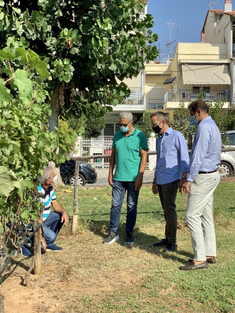 Ο τρύγος των ερυθρών ποικιλιών πραγματοποιήθηκε σήμερα, Τρίτη 15 Σεπτεμβρίου 2020, στον χώρο του αστικού αμπελώνα του Δήμου Θεσσαλονίκης, στην περιοχή του Καυτανζογλείου, παρουσία του Δημάρχου Κωνσταντίνου Ζέρβα, του οινοποιού Βαγγέλη Γεροβασιλείου και του Αντιδημάρχου Περιβάλλοντος Σωκράτη Δημητριάδη.
